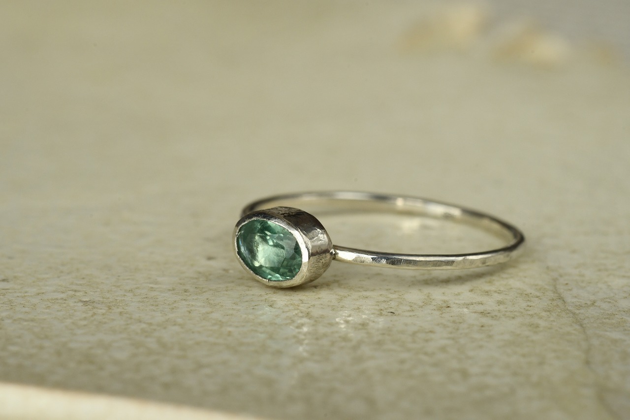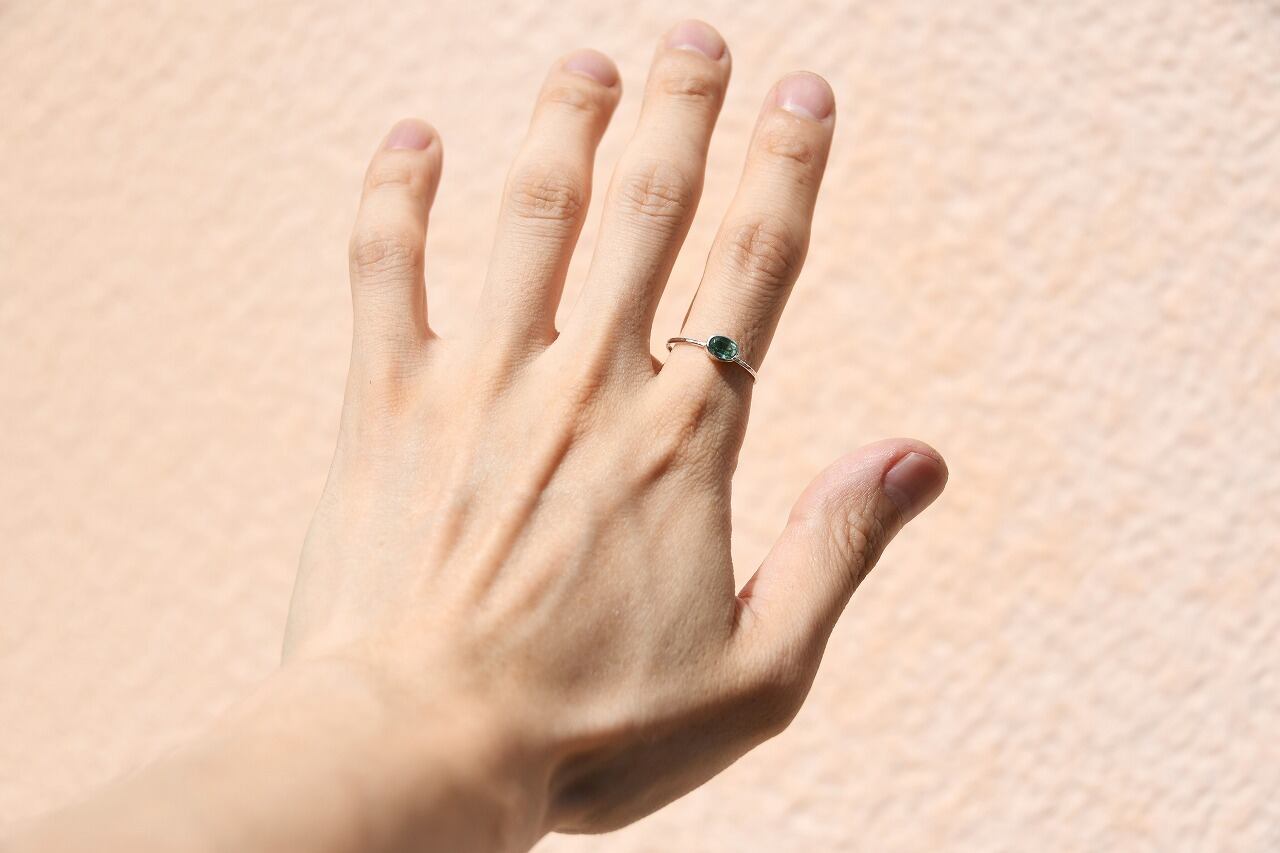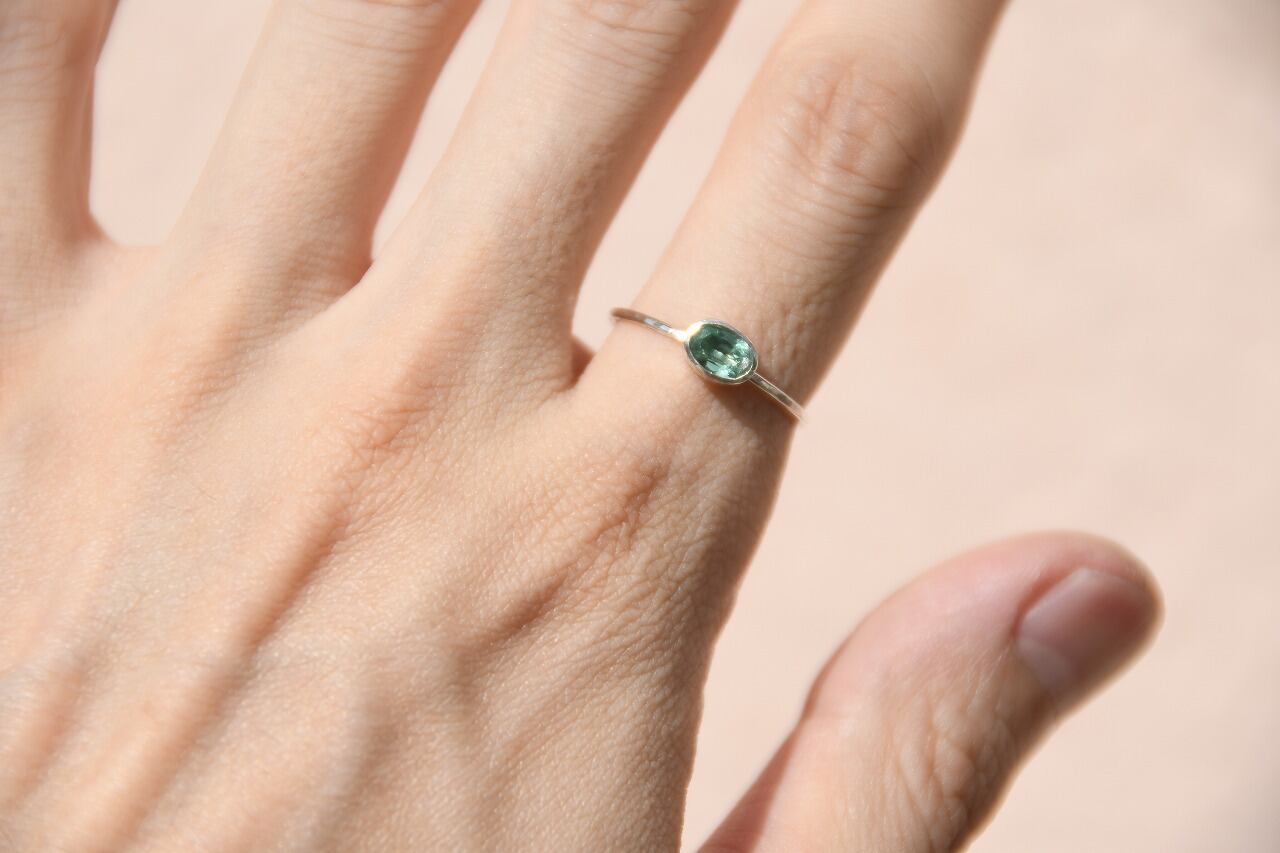 今回はグリーンカイヤナイトとシルバーの組み合わせのリングです