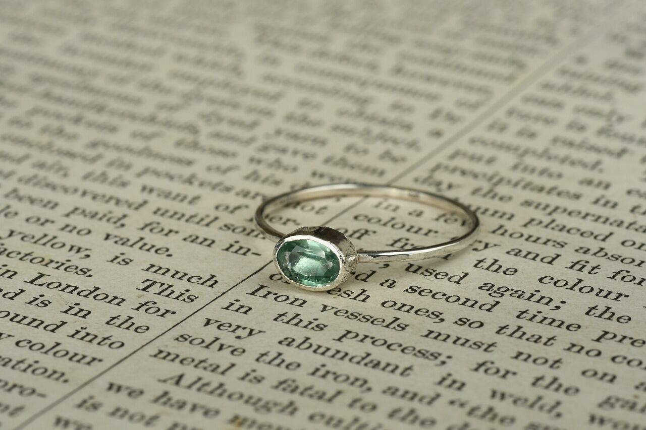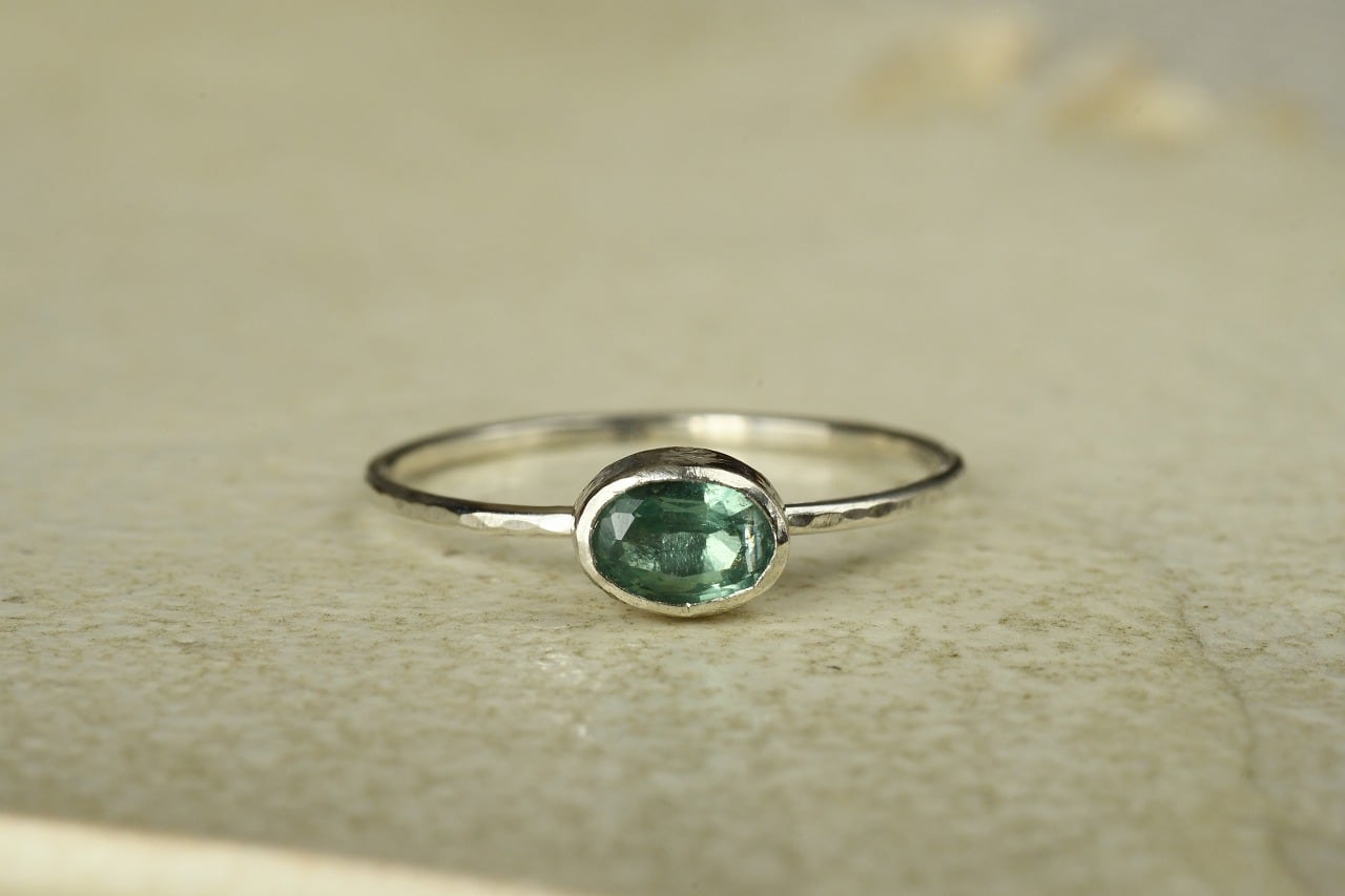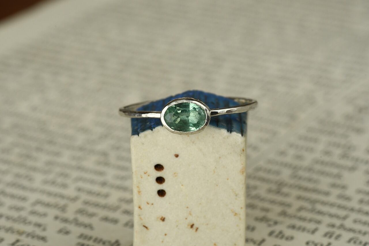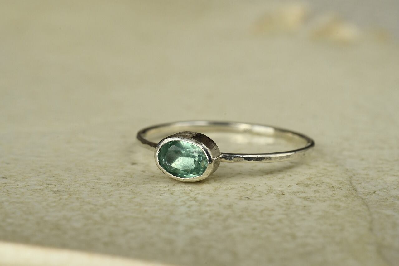今回はグリーンカイヤナイトとシルバーの組み合わせのリングです