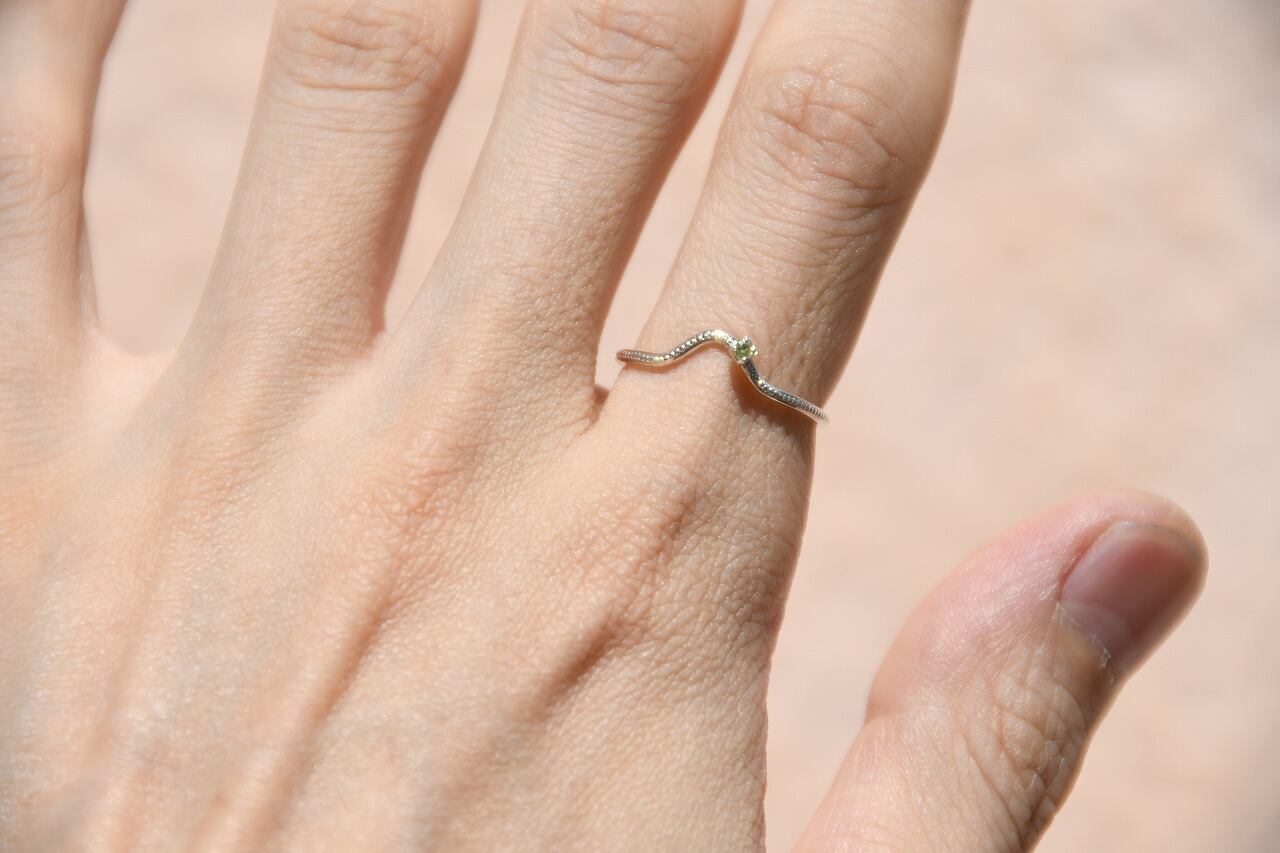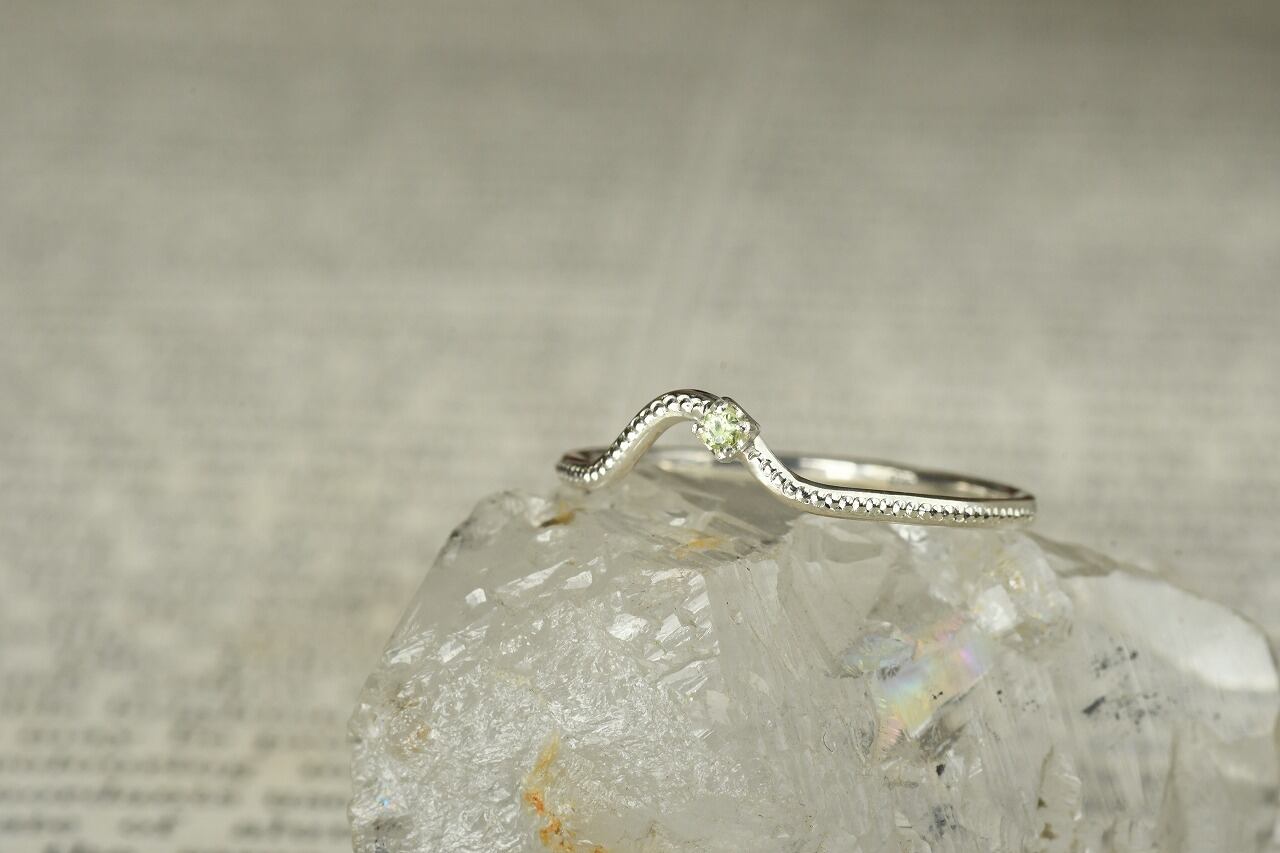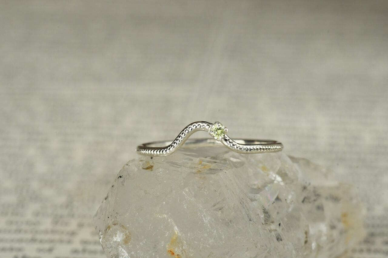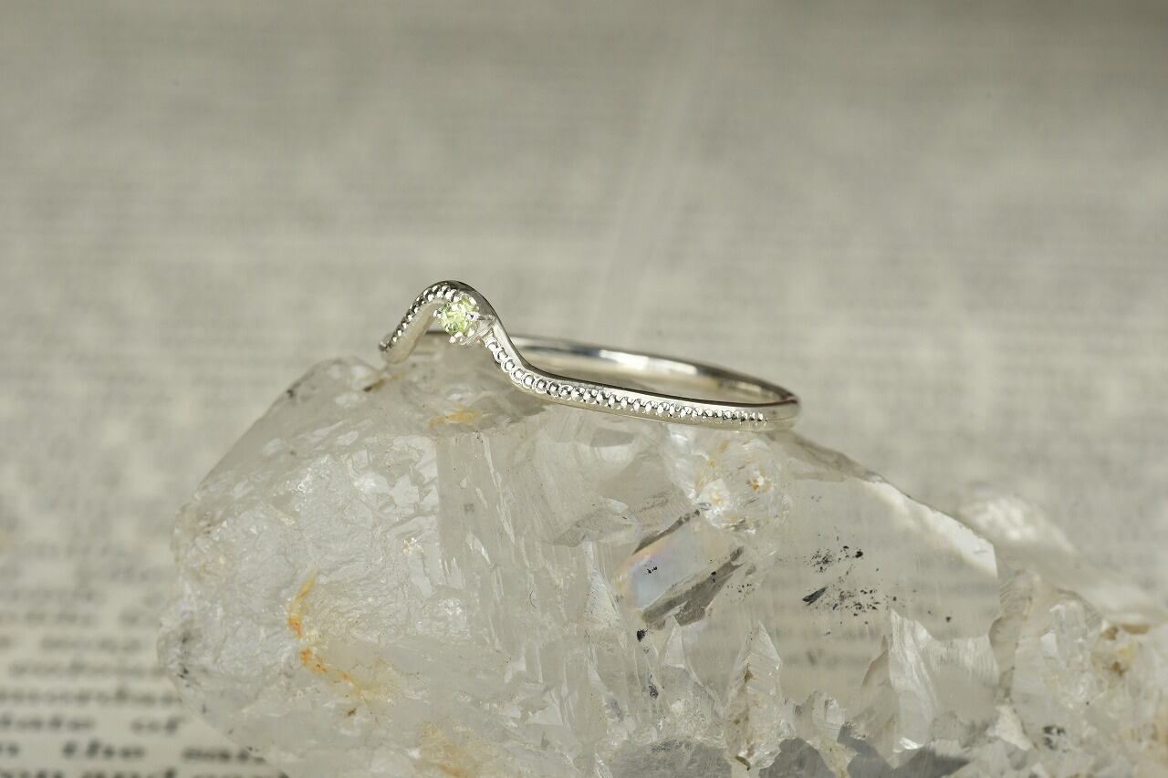 すっきりとした色合いのシルバーと明るいペリドットの組み合わせ