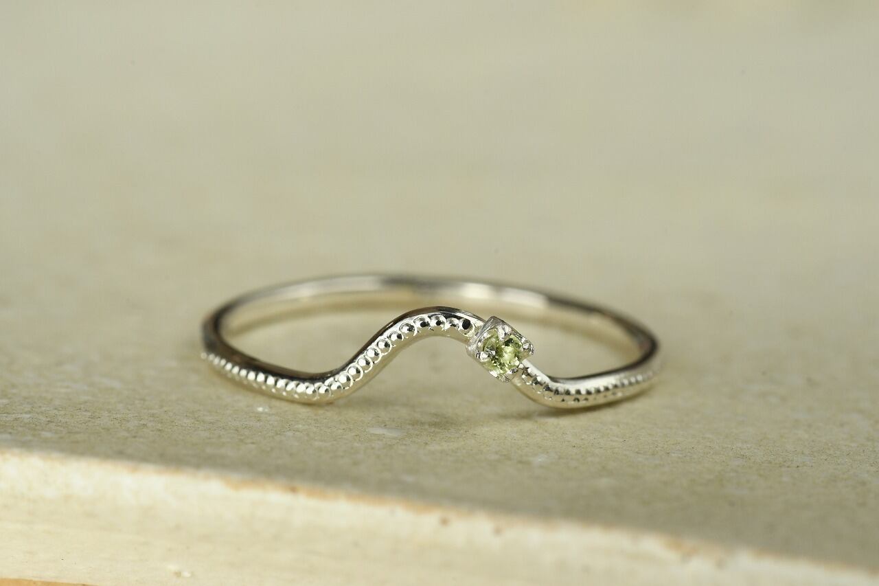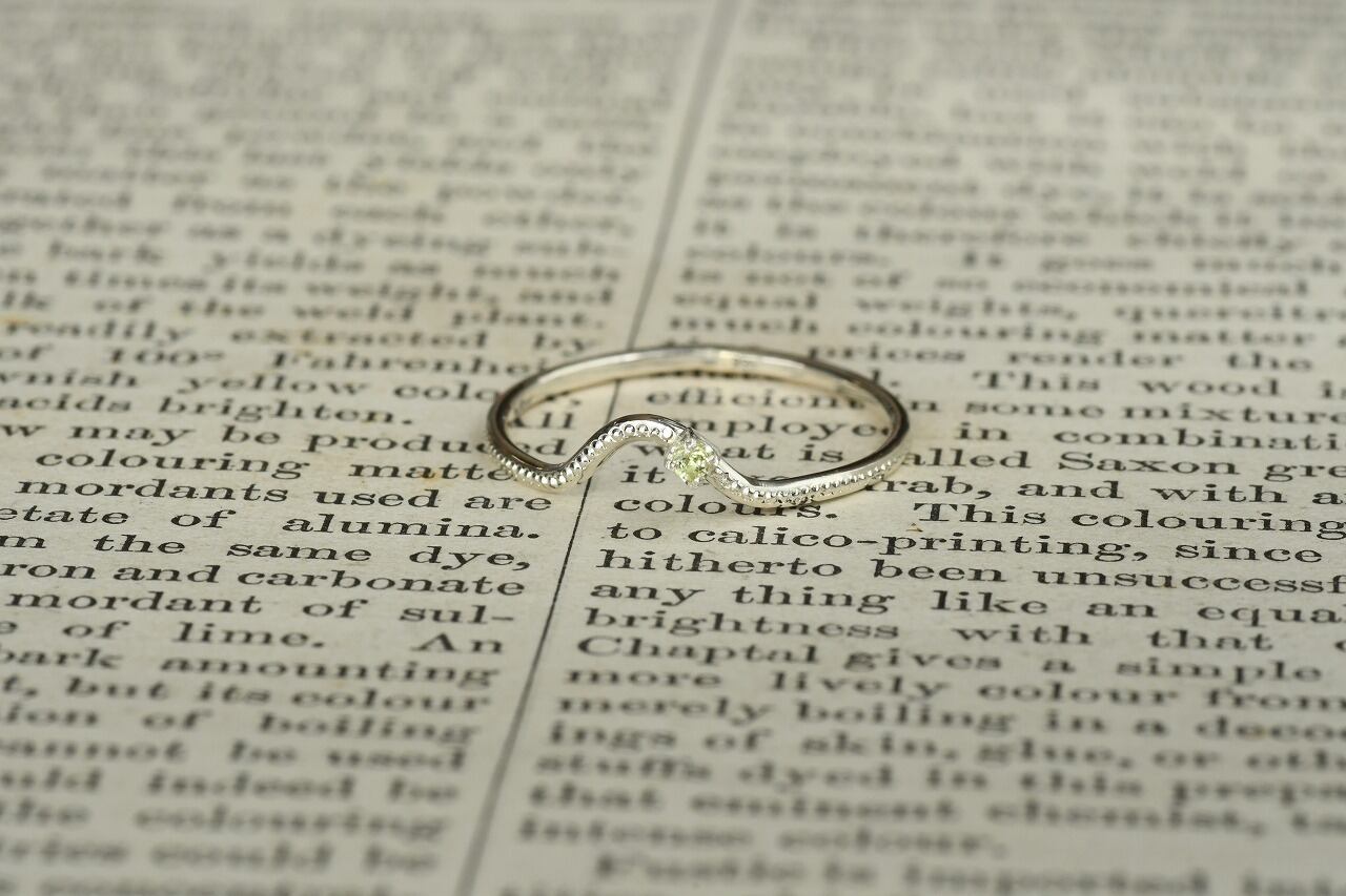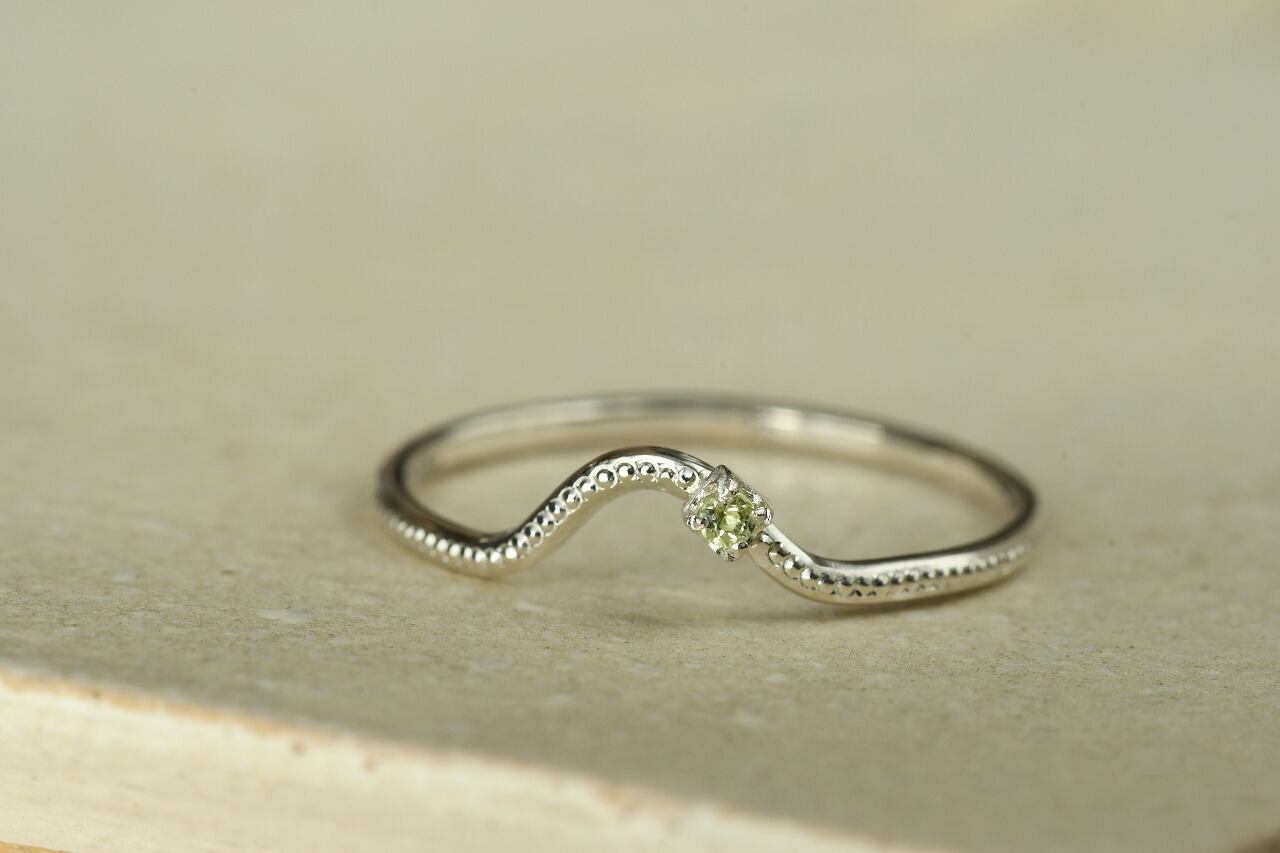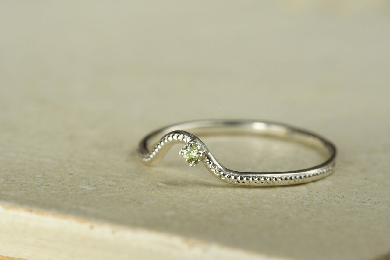 すっきりとした色合いのシルバーと明るいペリドットの組み合わせ