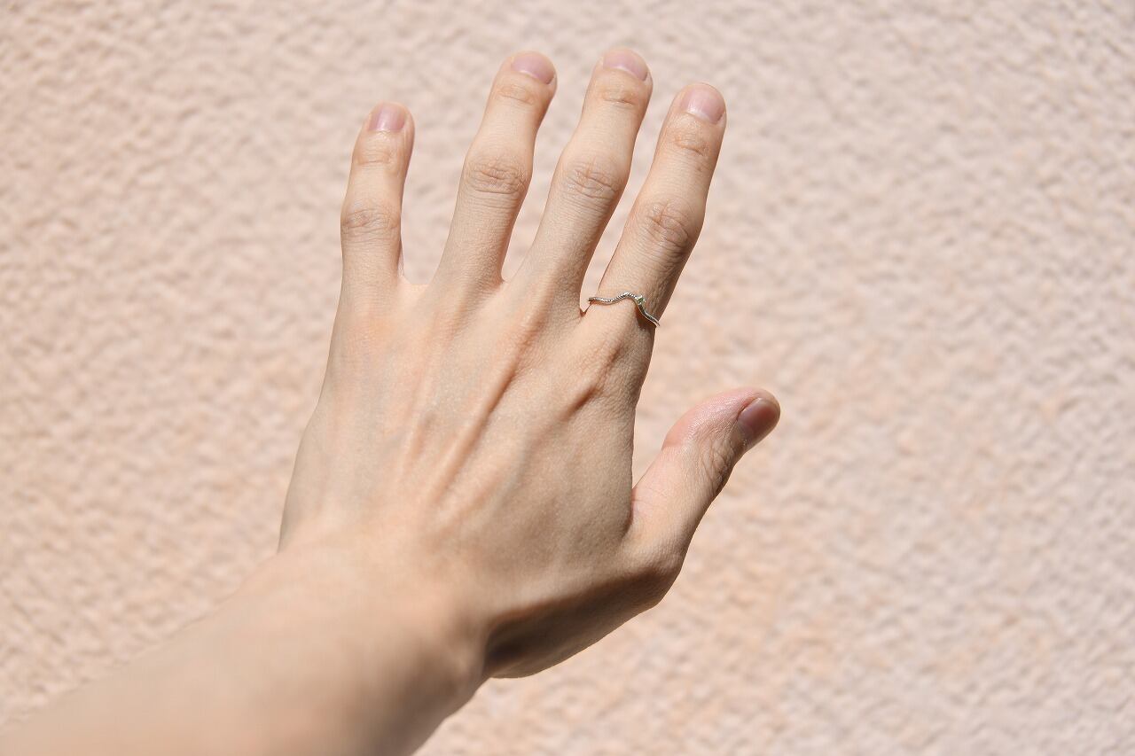 今回はシルバーリングを曲げて、そこにミルを打つシリーズ作品の新作として制作をさせていただきました。
