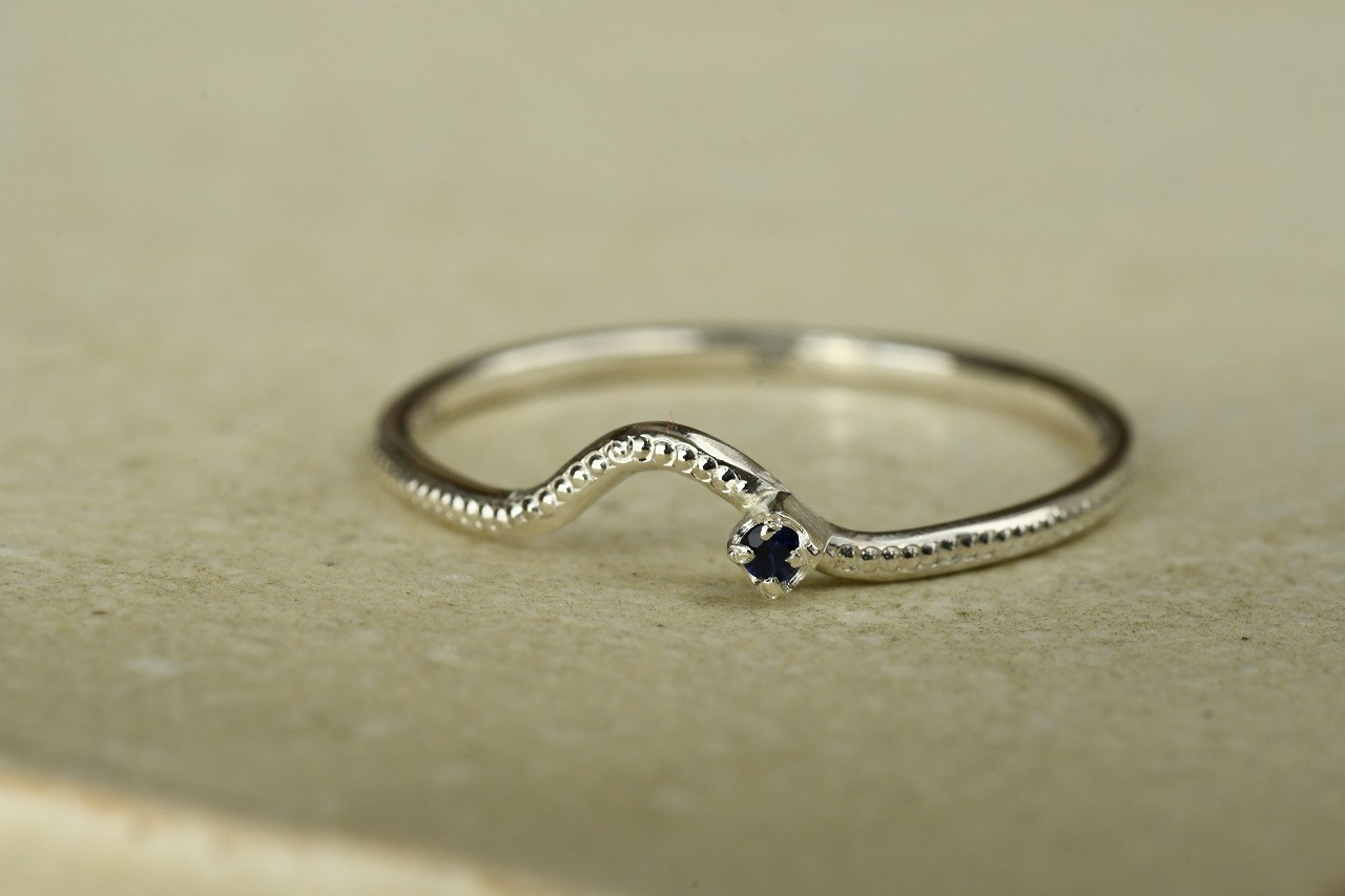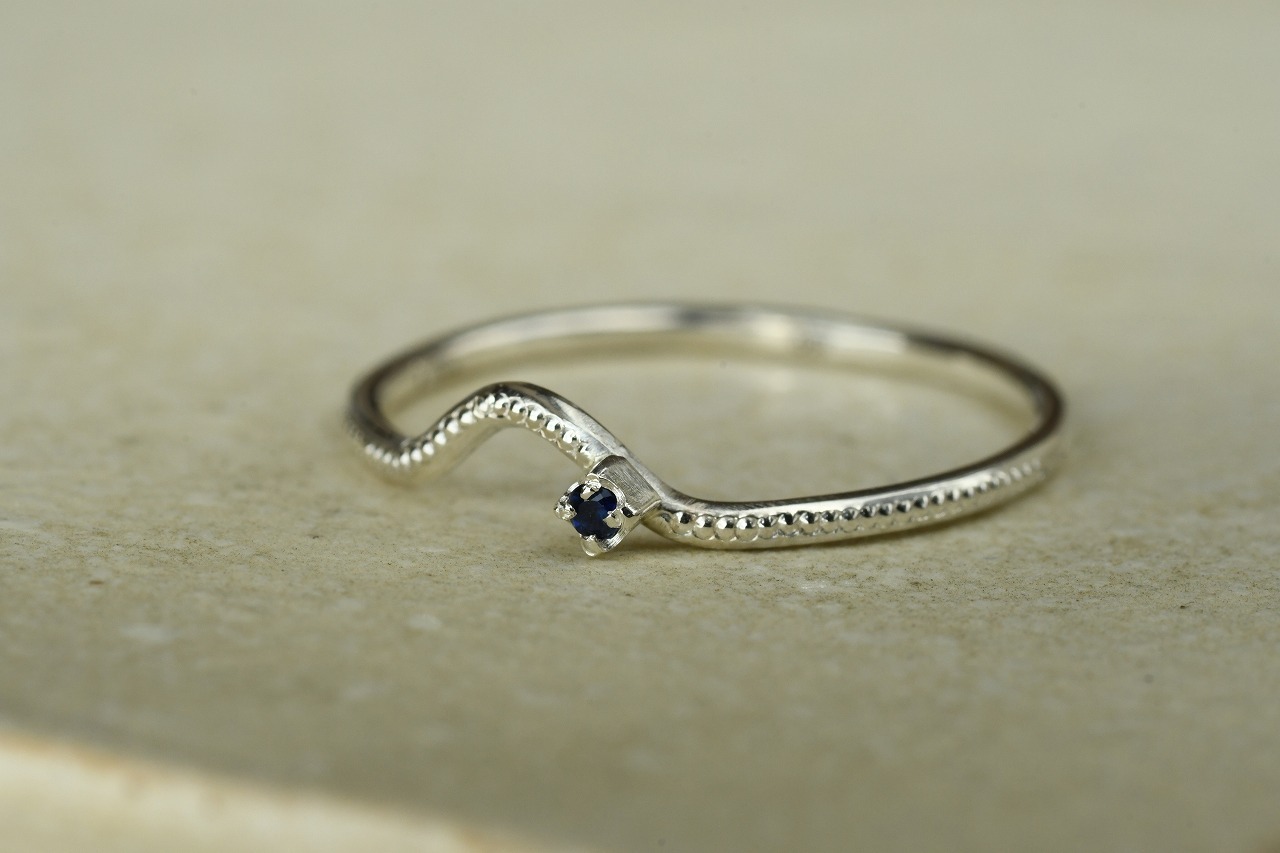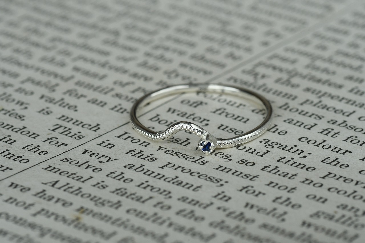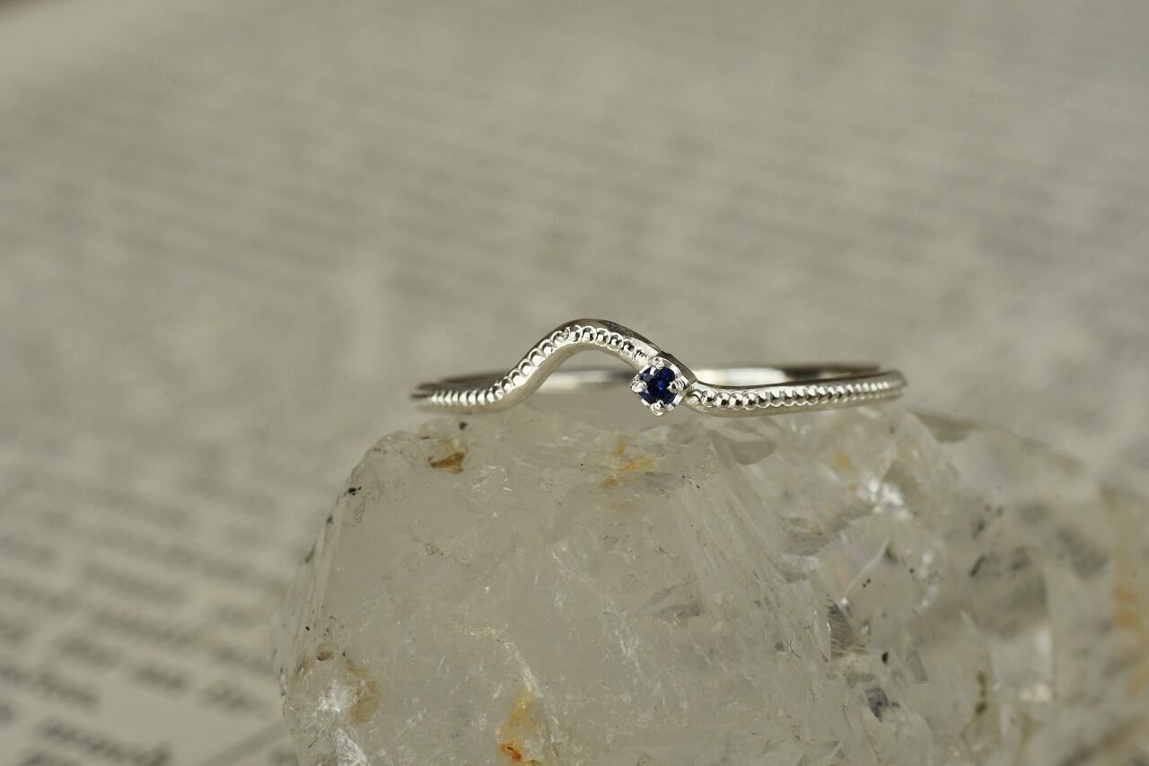 すっきりとした色合いのシルバーと深い青のサファイアの組み合わせ