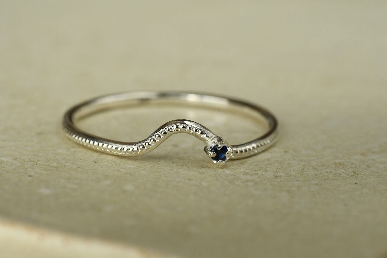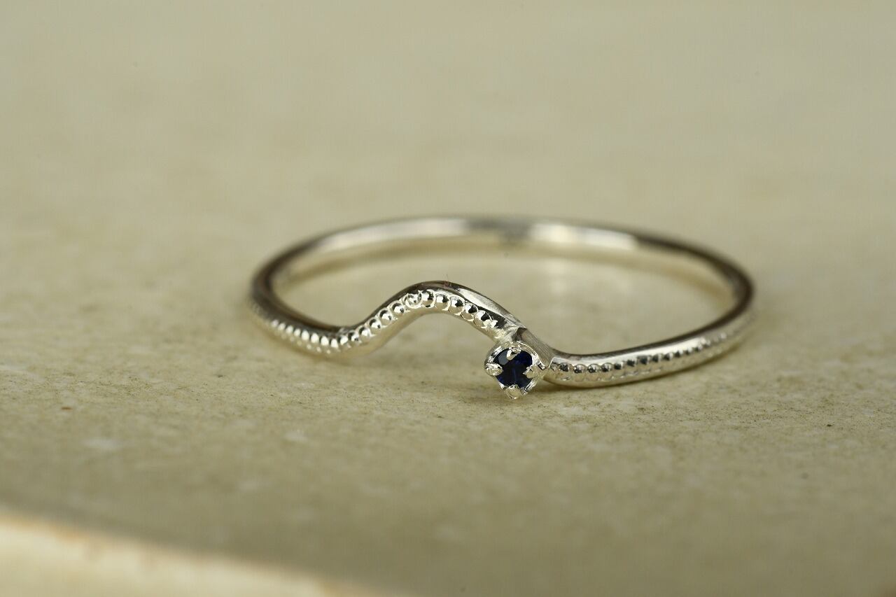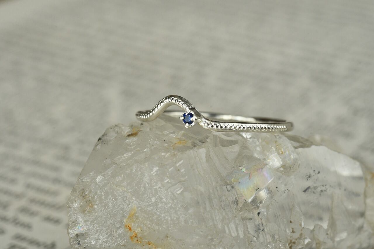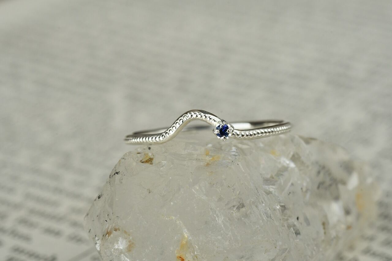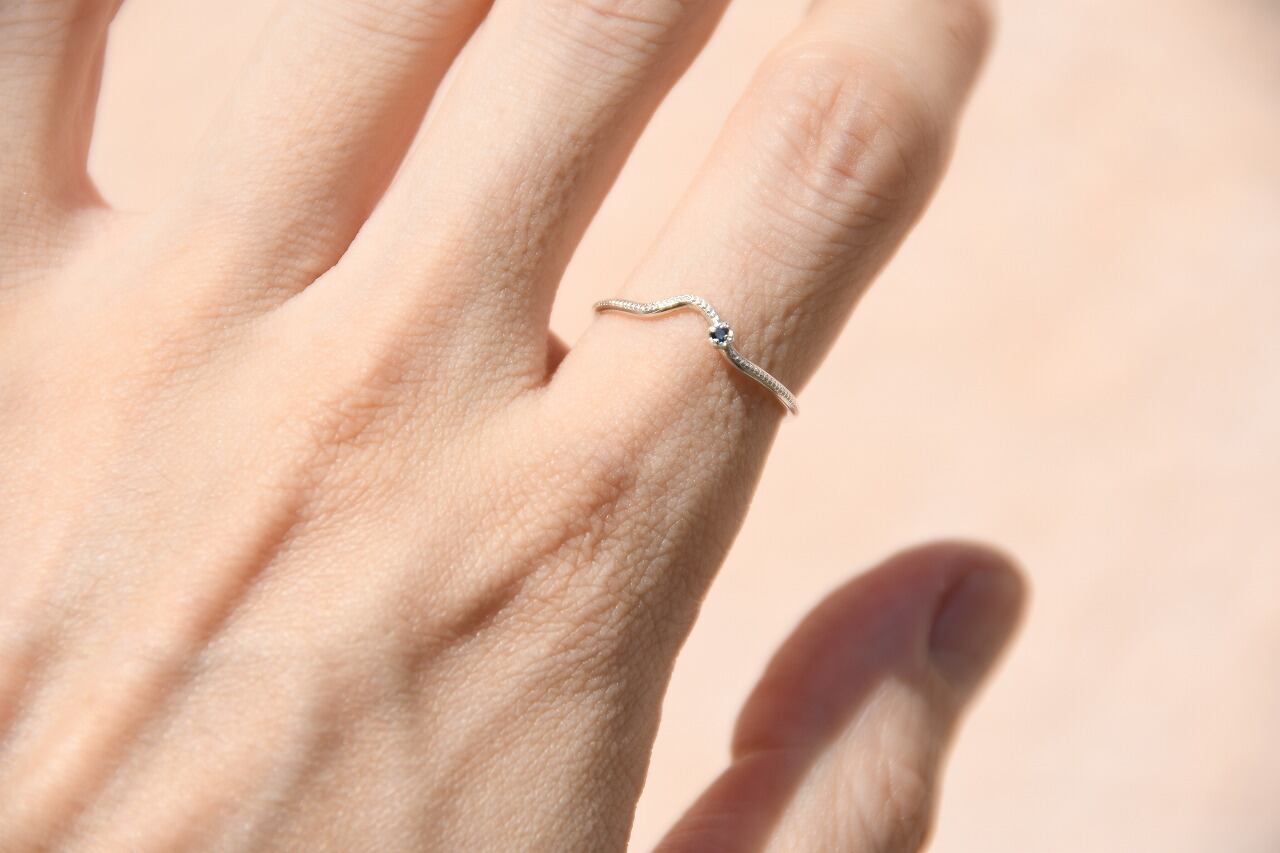 すっきりとした色合いのシルバーと深い青のサファイアの組み合わせ