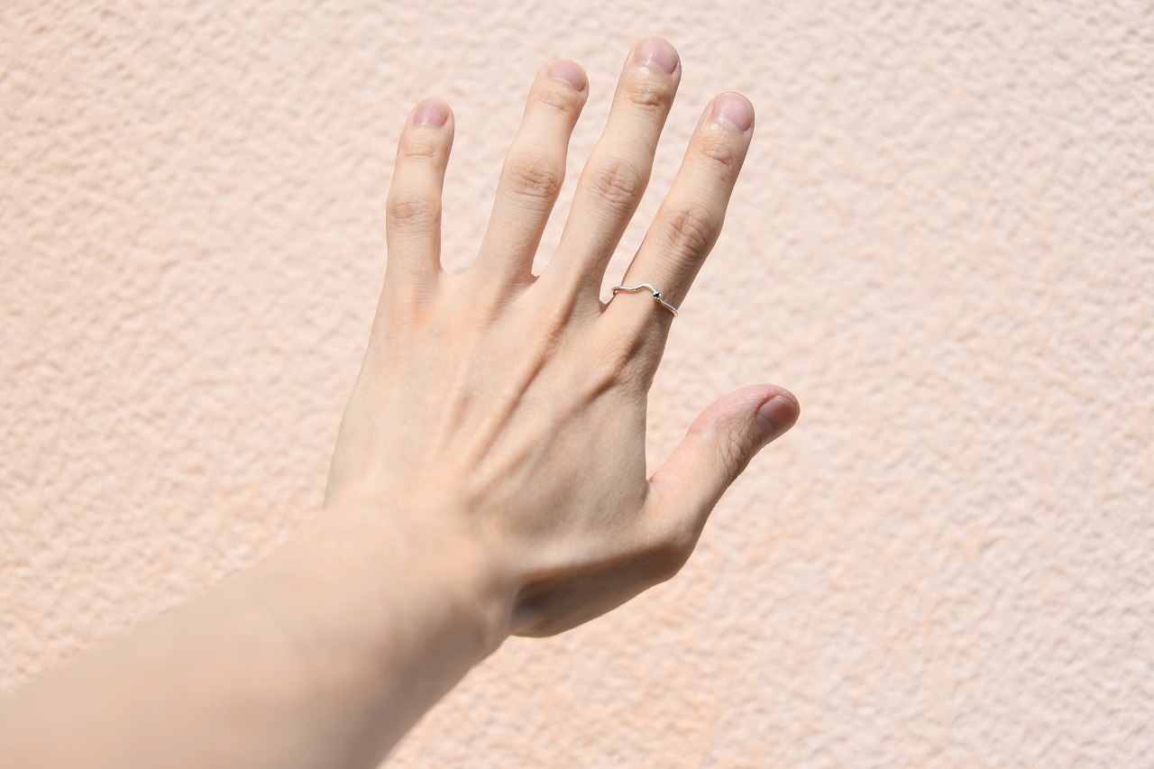 今回はシルバーリングを曲げて、そこにミルを打つシリーズ作品の新作として制作をさせていただきました。