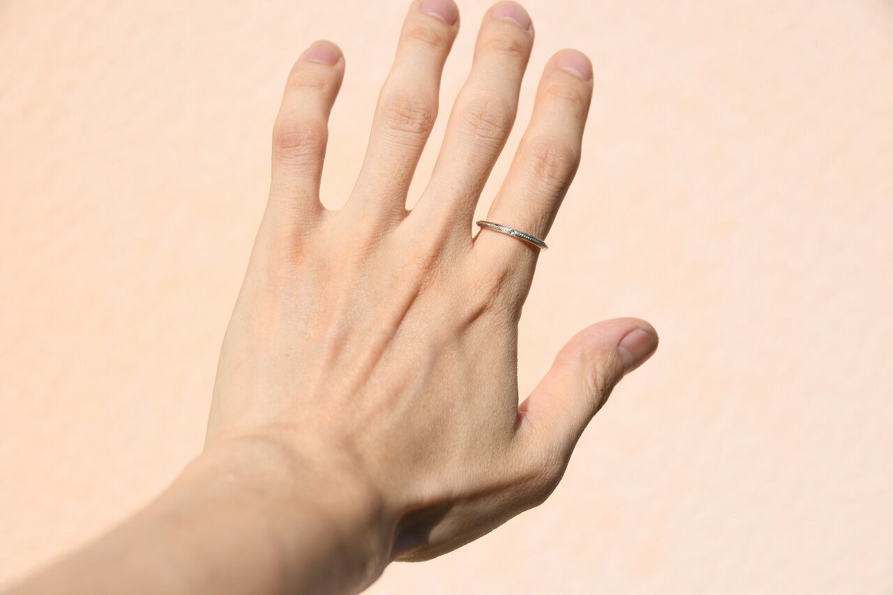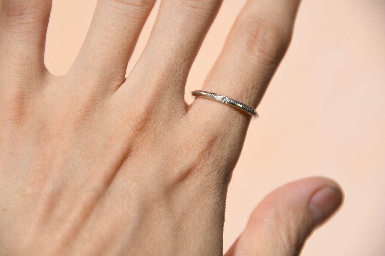 すっきりとした印象のシルバーの輝きと合わせて楽しんでもらえる作品に仕上げることができました。