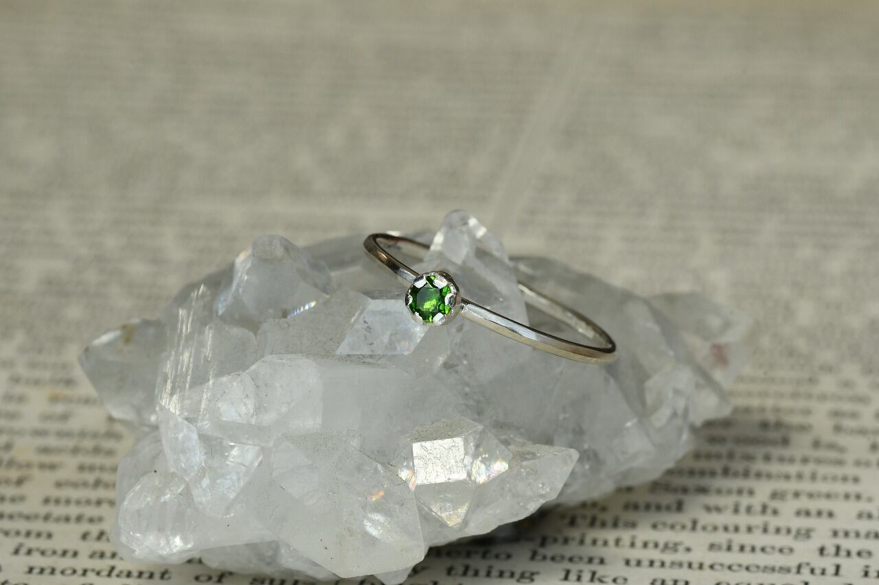 先日制作を行った『煌きに触れる物語』と同じ石の留め方で制作を行ったシンプルなシルバー作品となります。