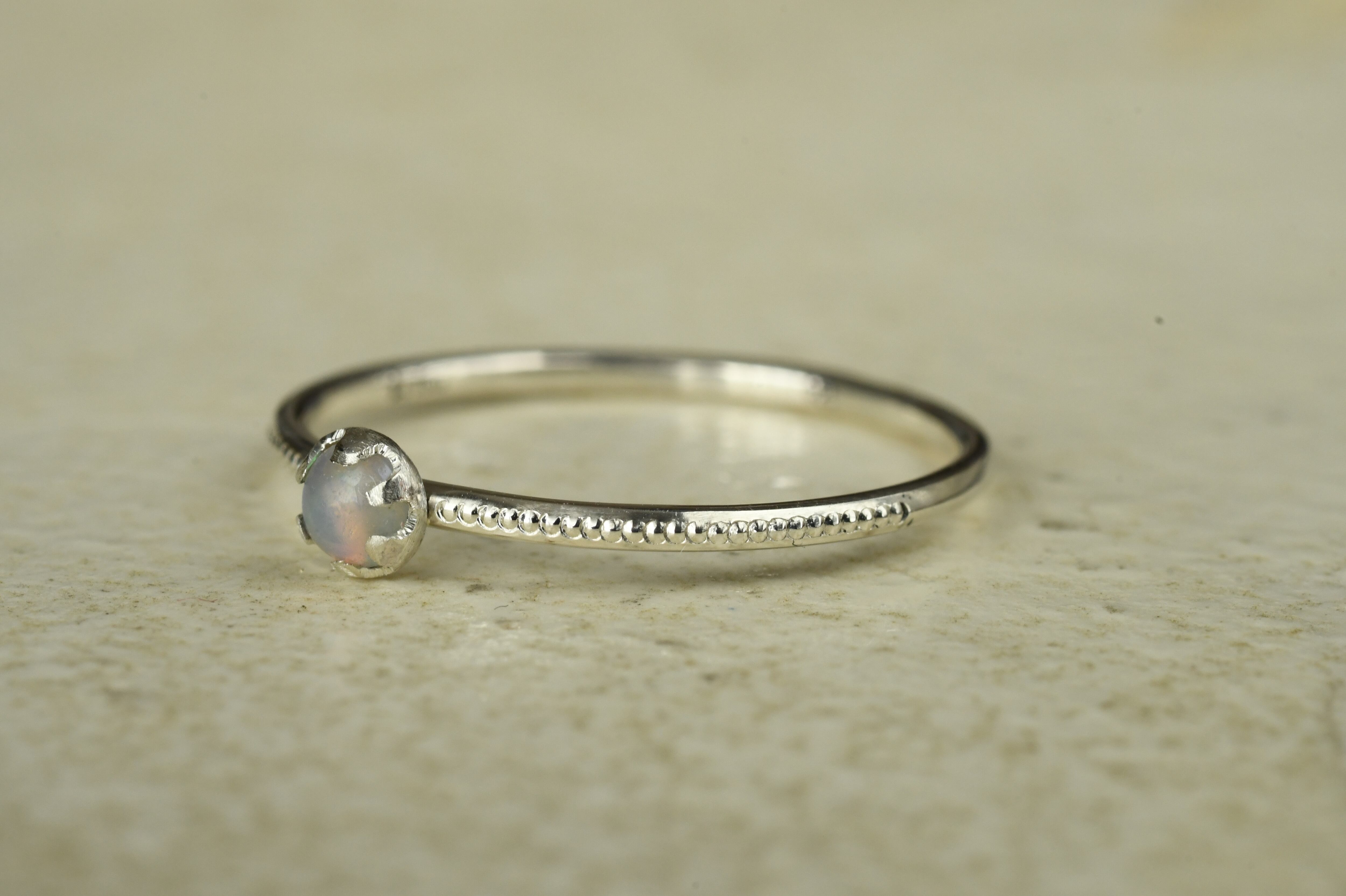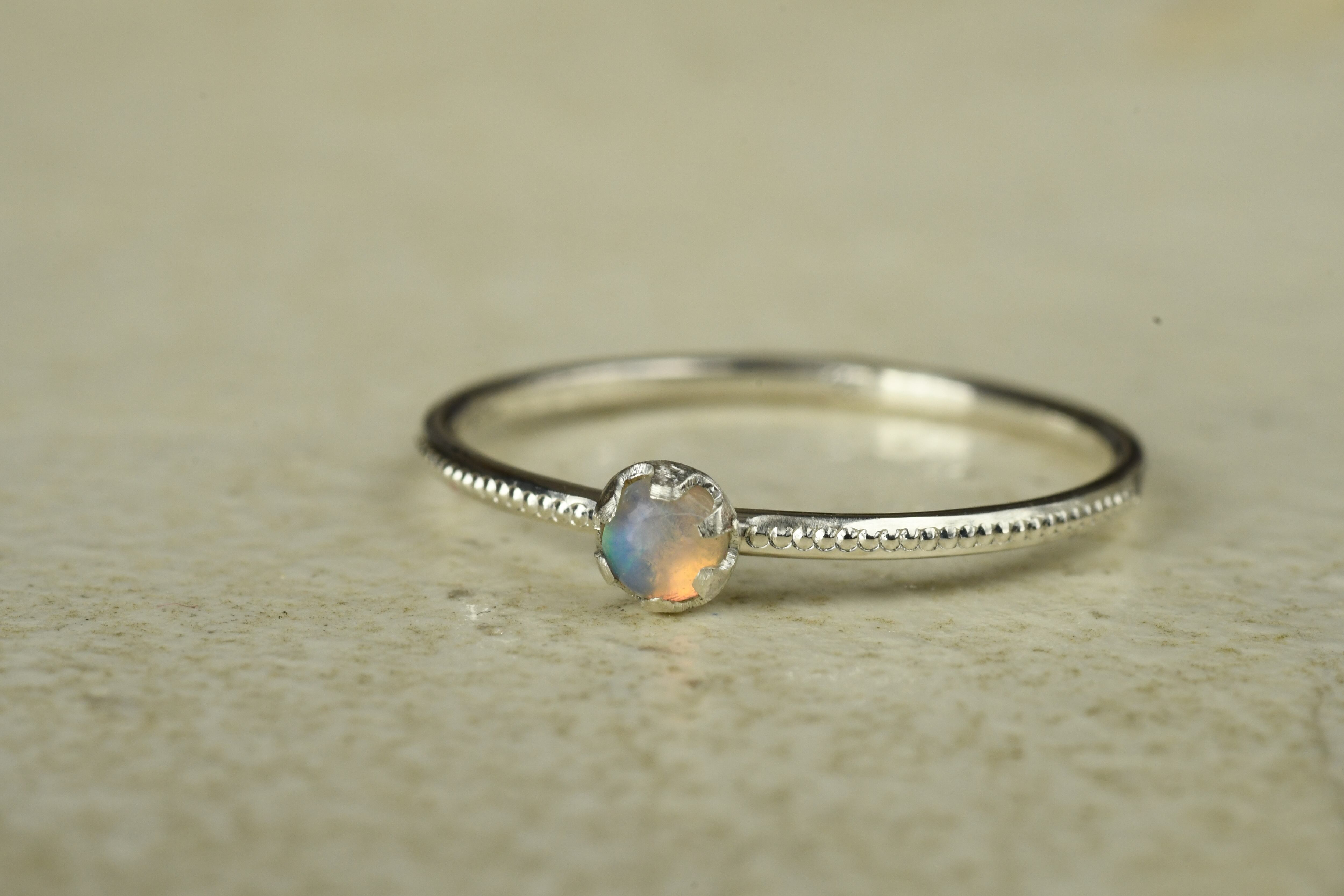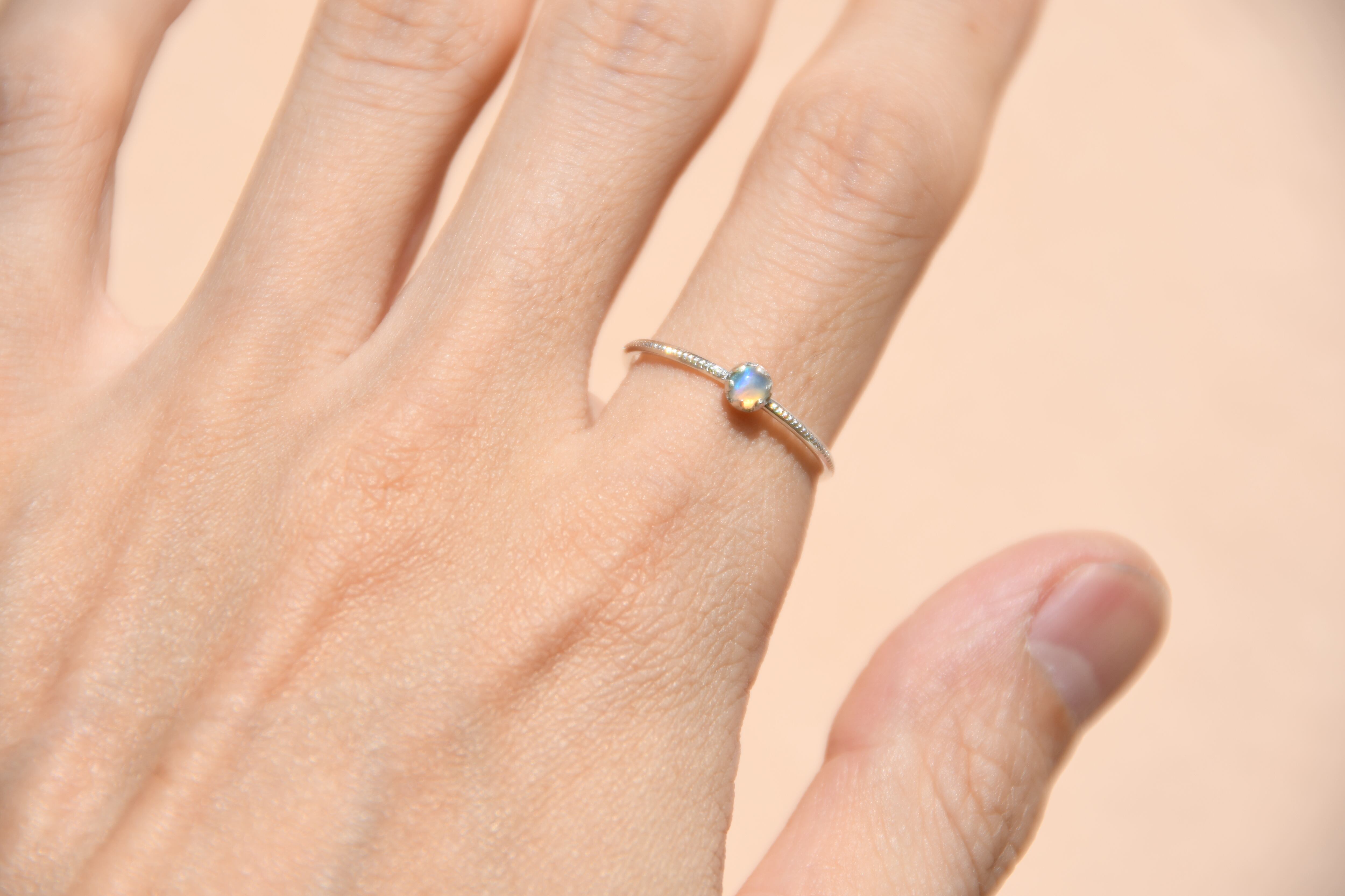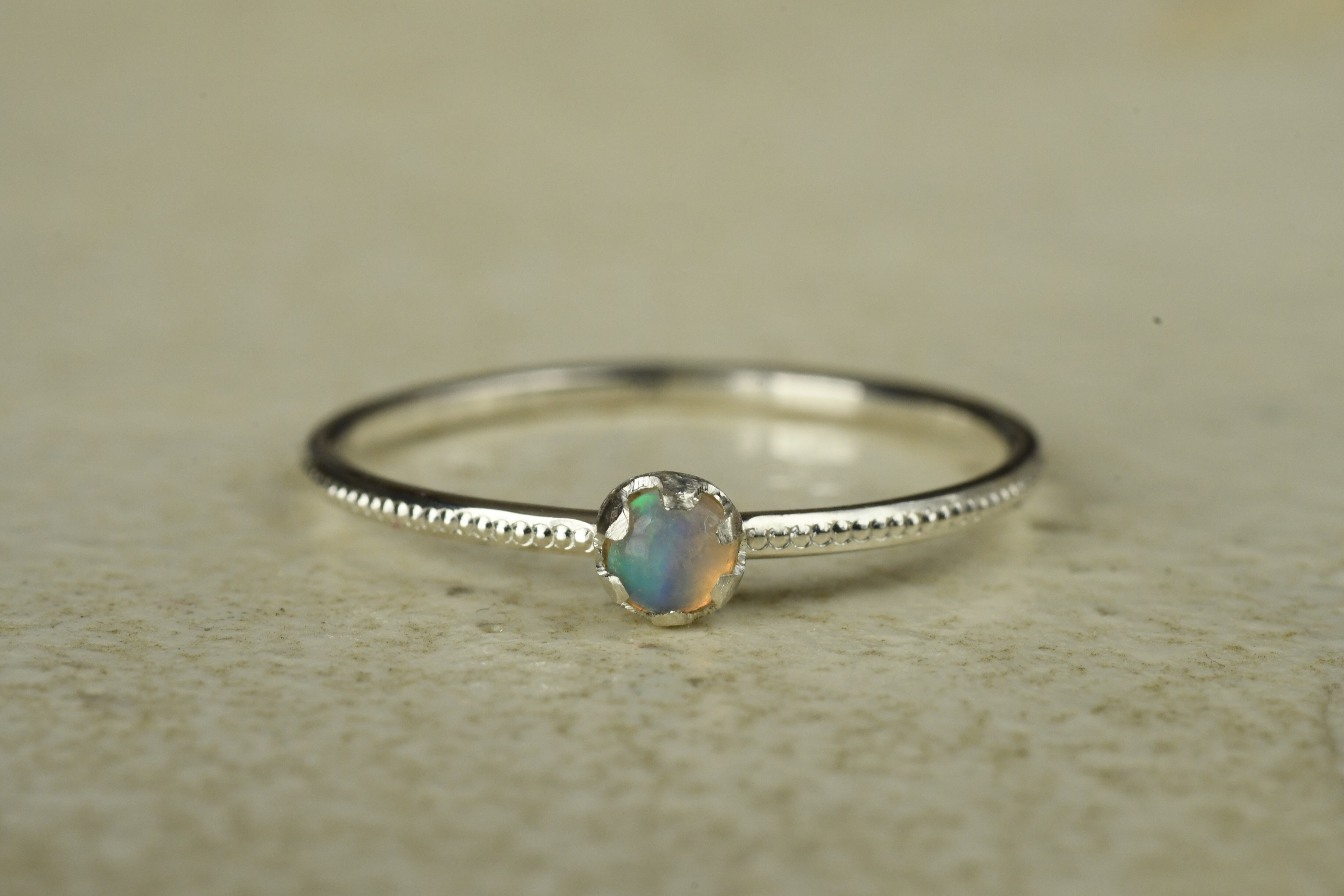 リング部分にはミルを打って美しいオーロラのようなプレシャスオパールを一粒留めてみました