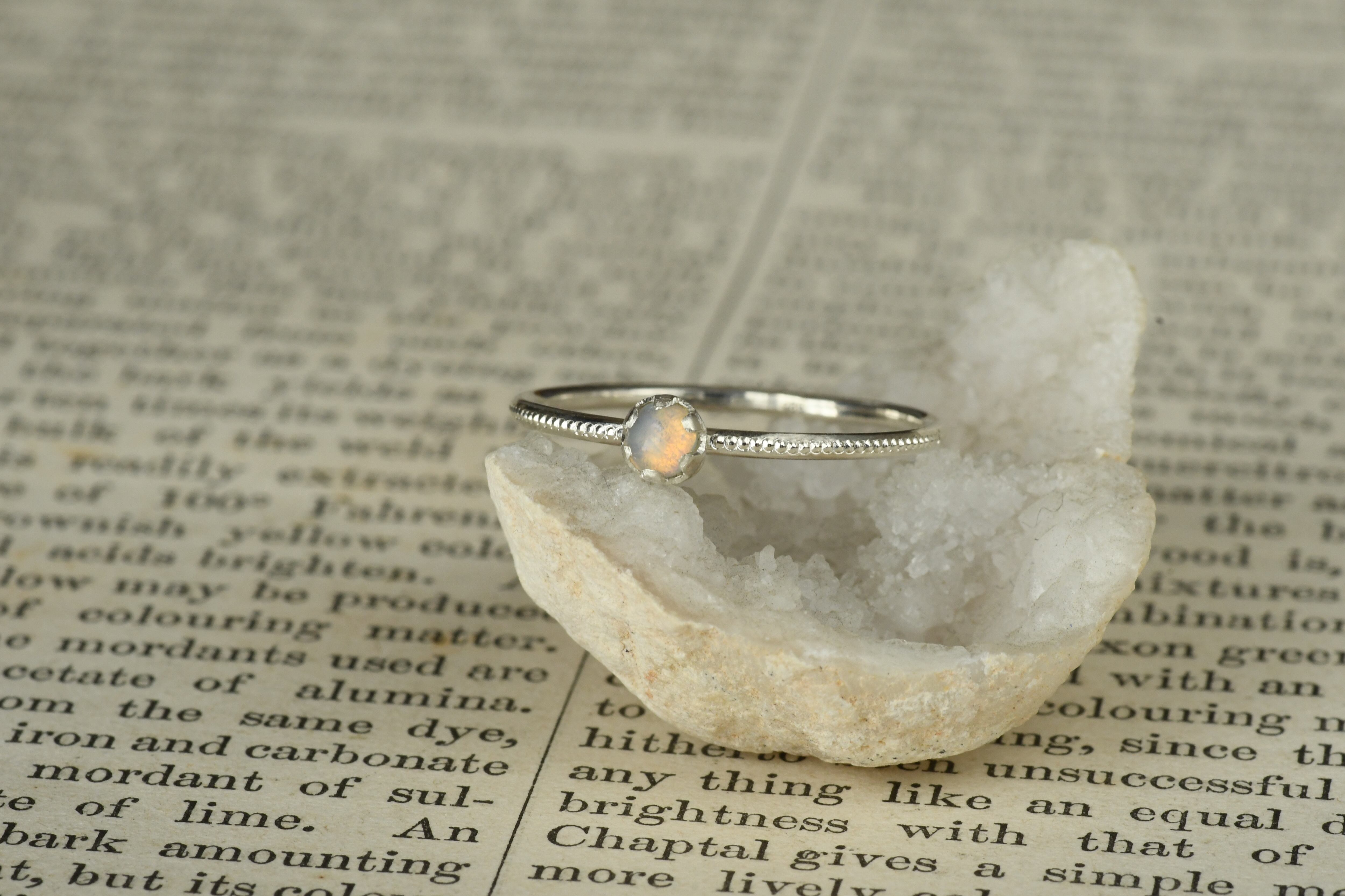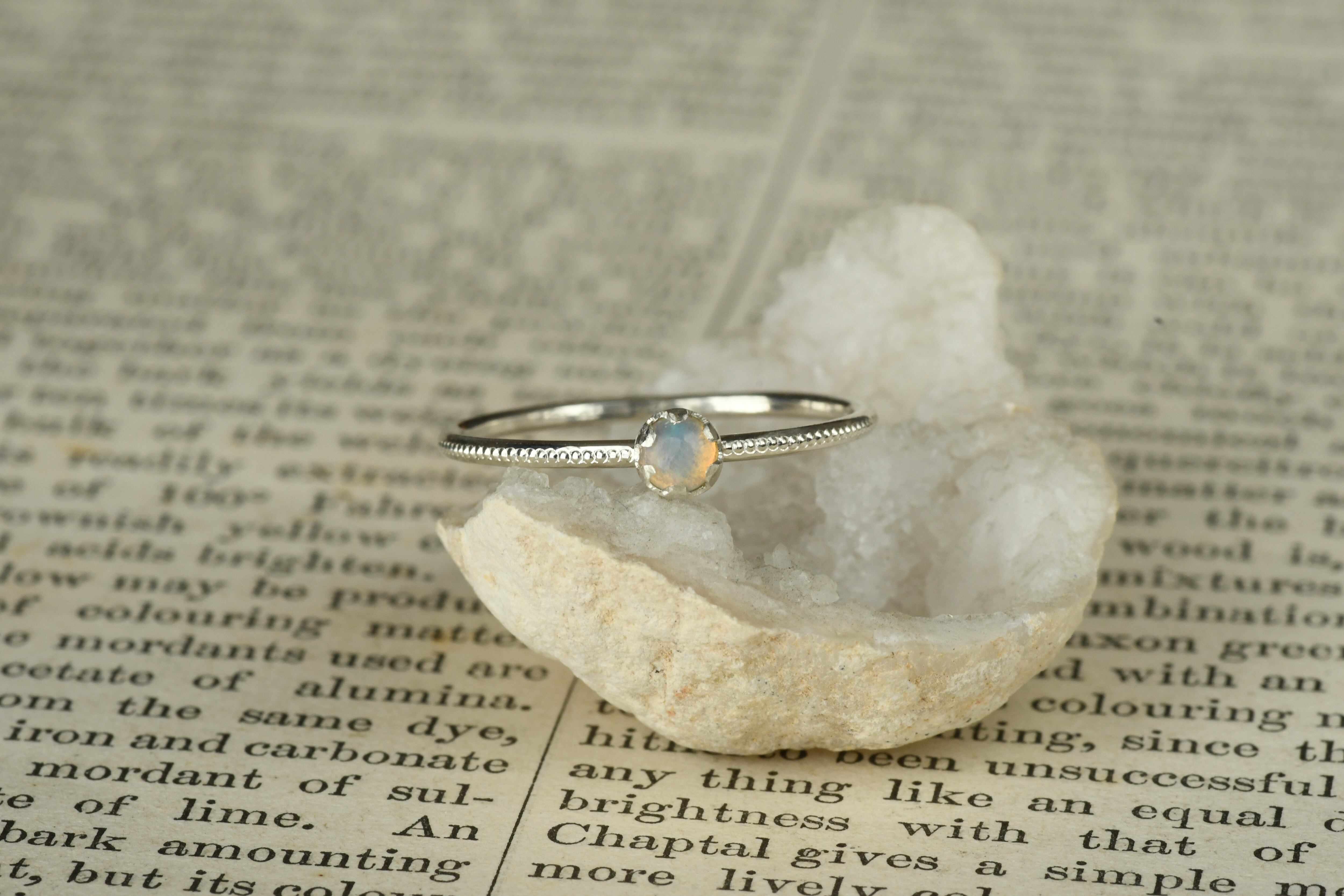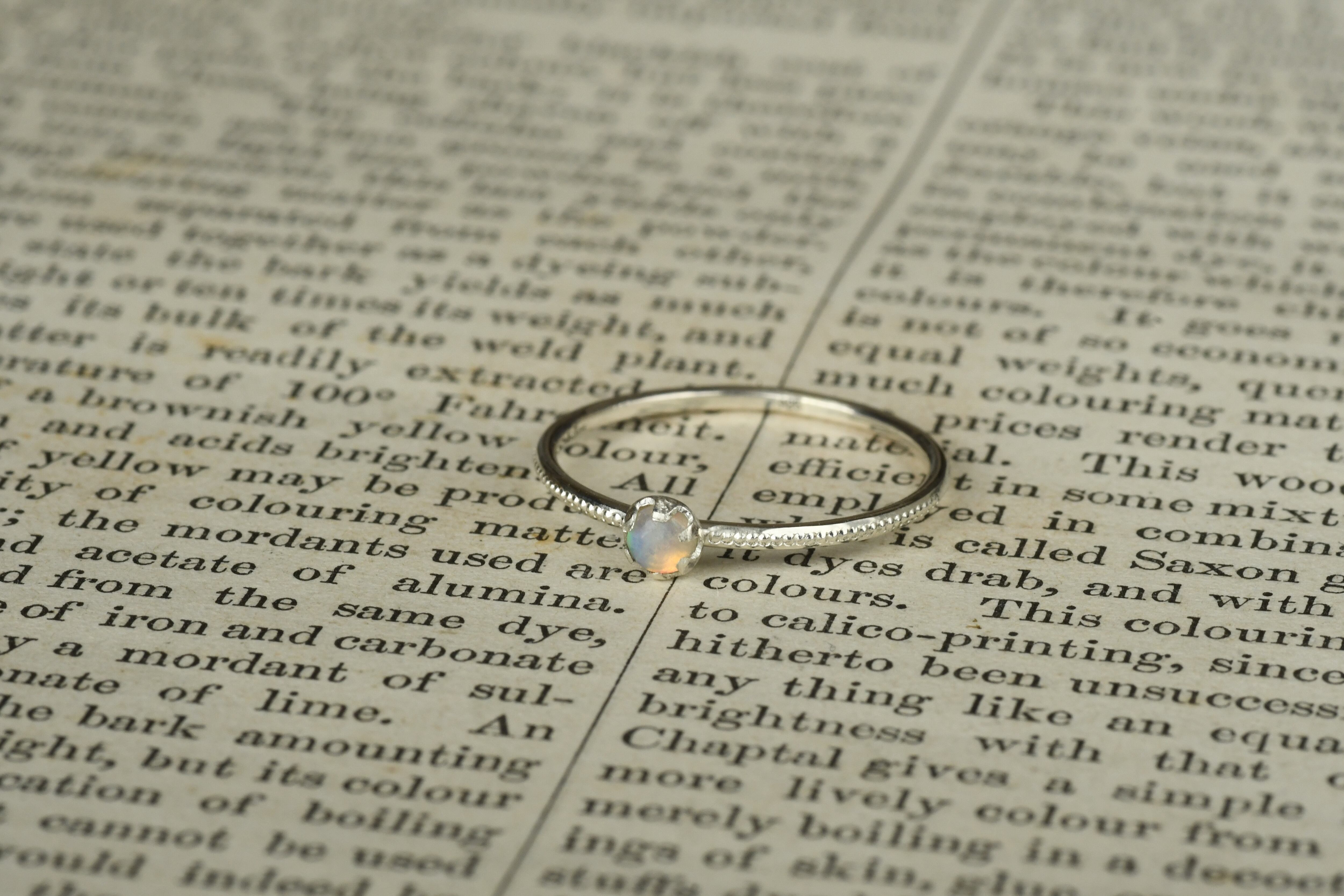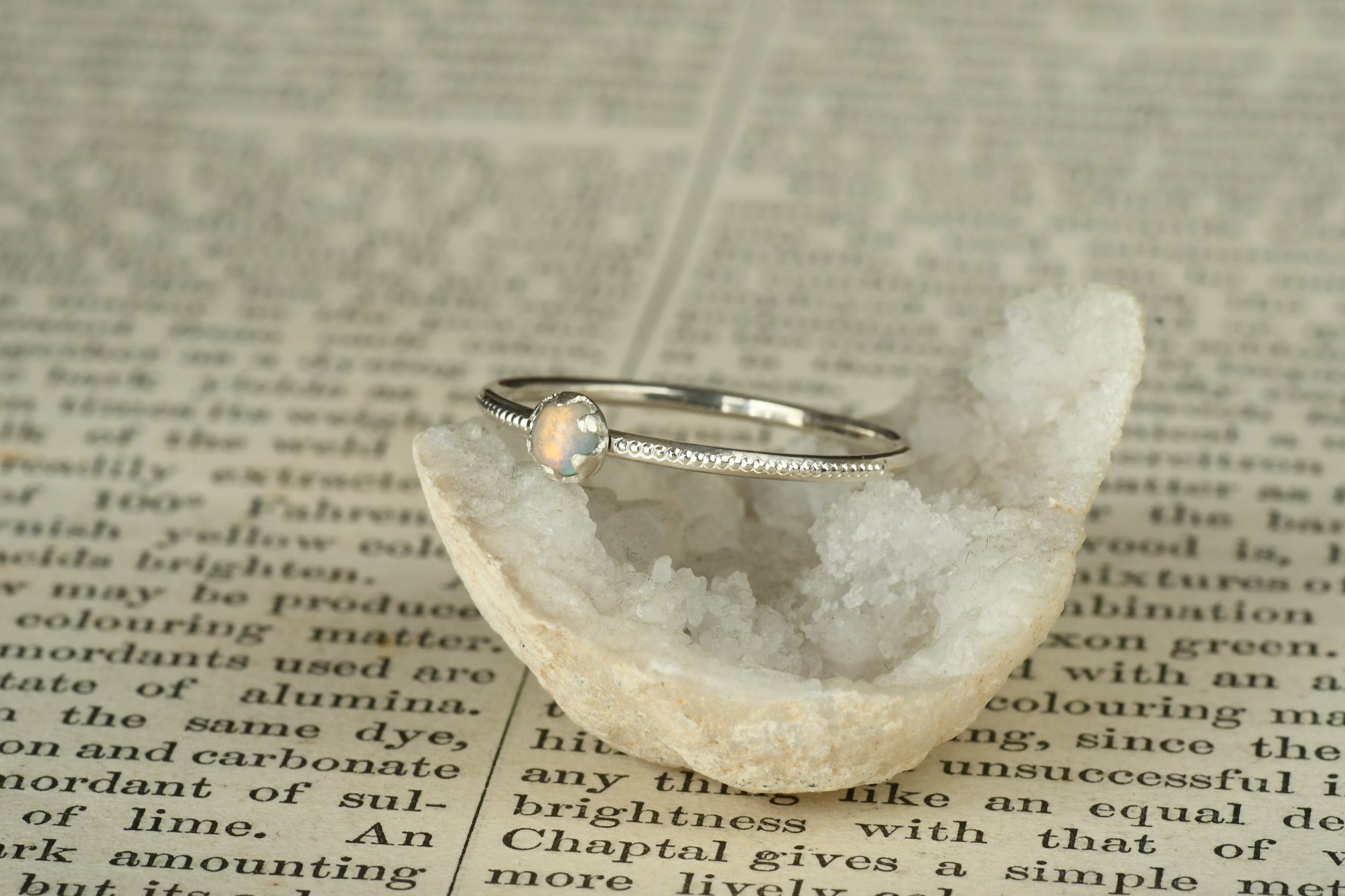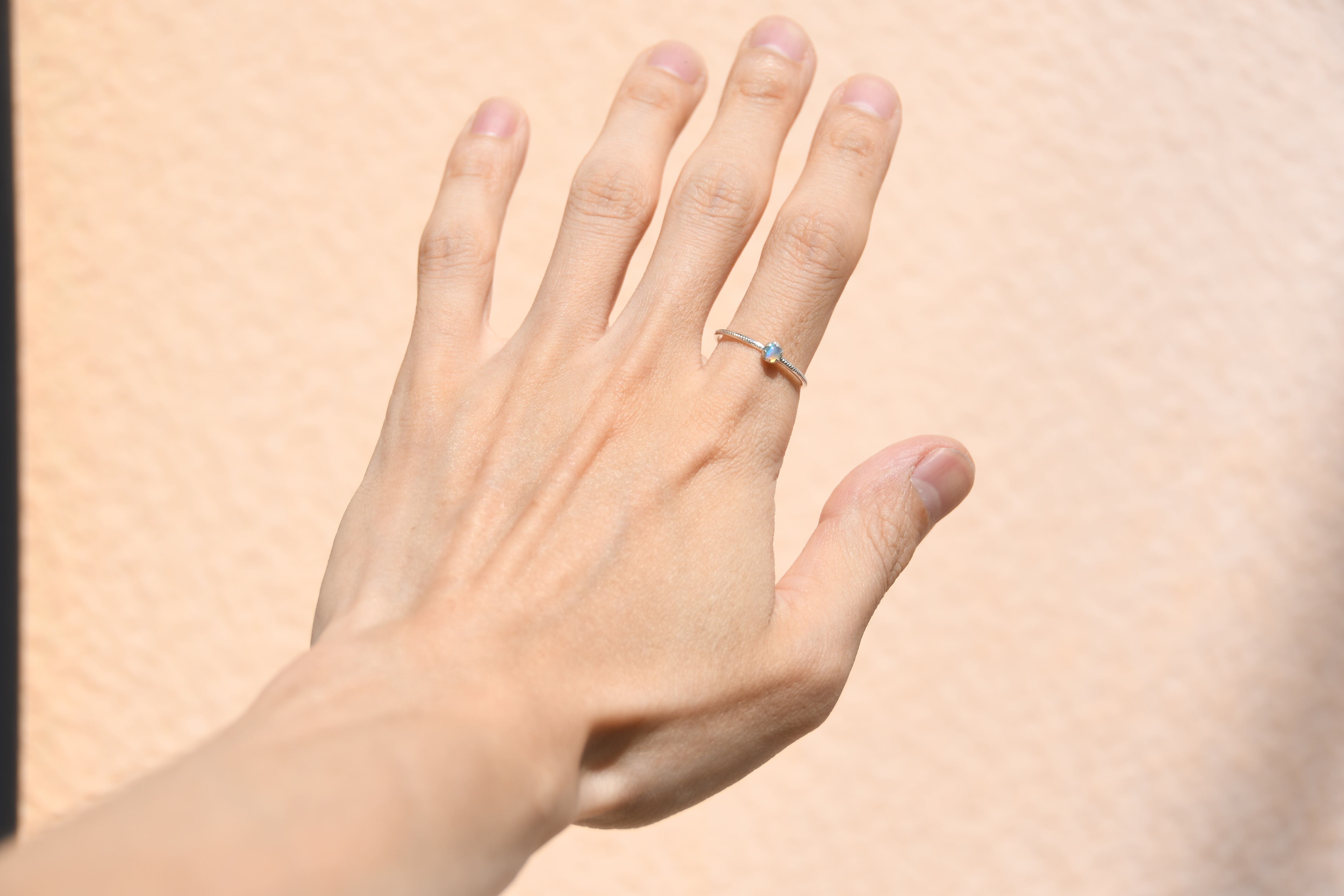 リング部分にはミルを打って美しいオーロラのようなプレシャスオパールを一粒留めてみました